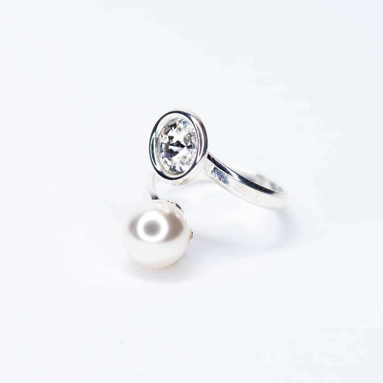 Swarovski kristall-ja pärl on kinnitatud niklivaba hõbeda (925) põhjale. Sõrmused on reguleeritavad.