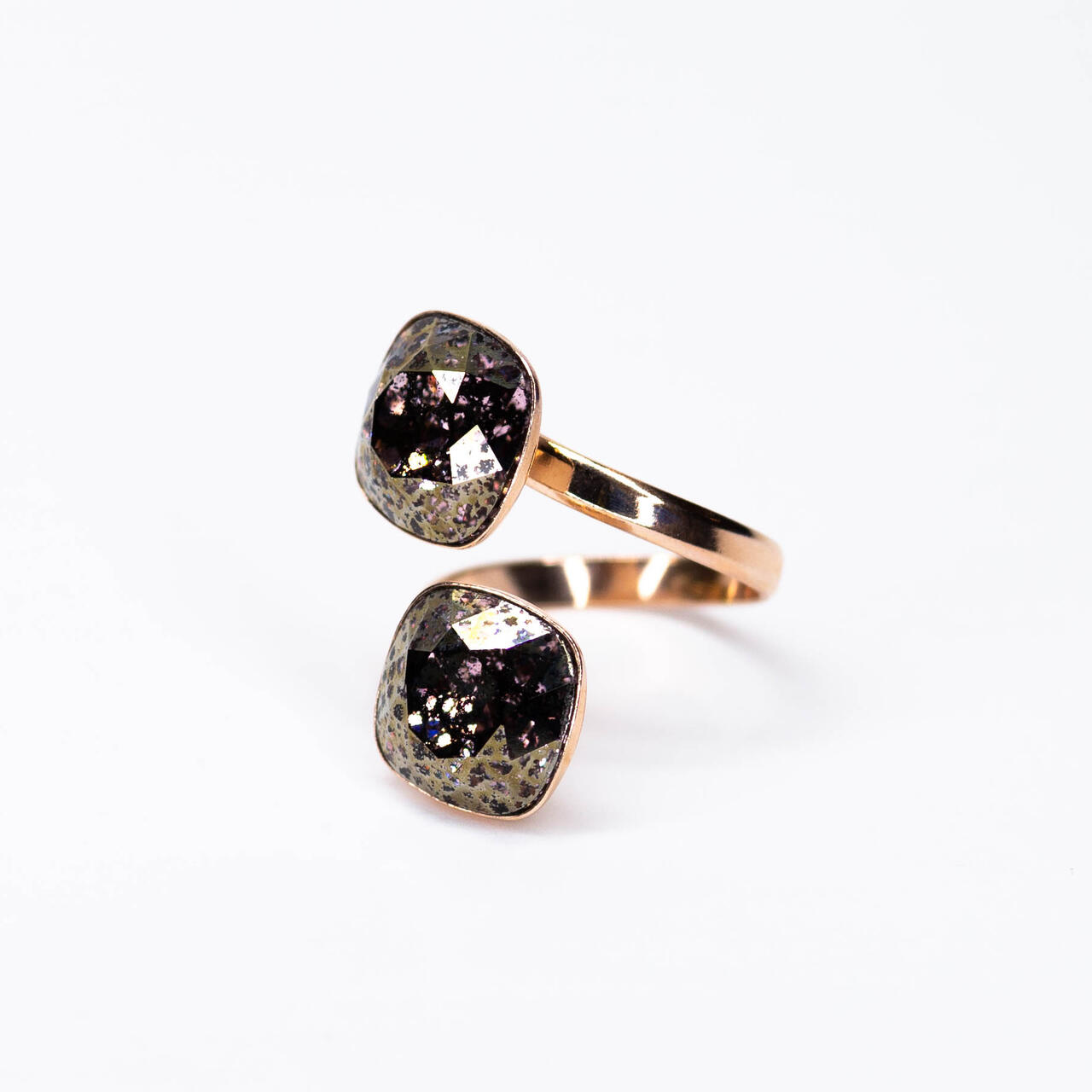 Kasutatud kristallid: Crystal, Opal ja DeLite. Swarovski kristallid on kinnitatud hõbepõhjale 925, mis on kaetud 18 karaadise rose gold tooni kullaga. Ehted on niklivabad. Sõrmused on reguleeritavad. Kristalli suurused 12mm.