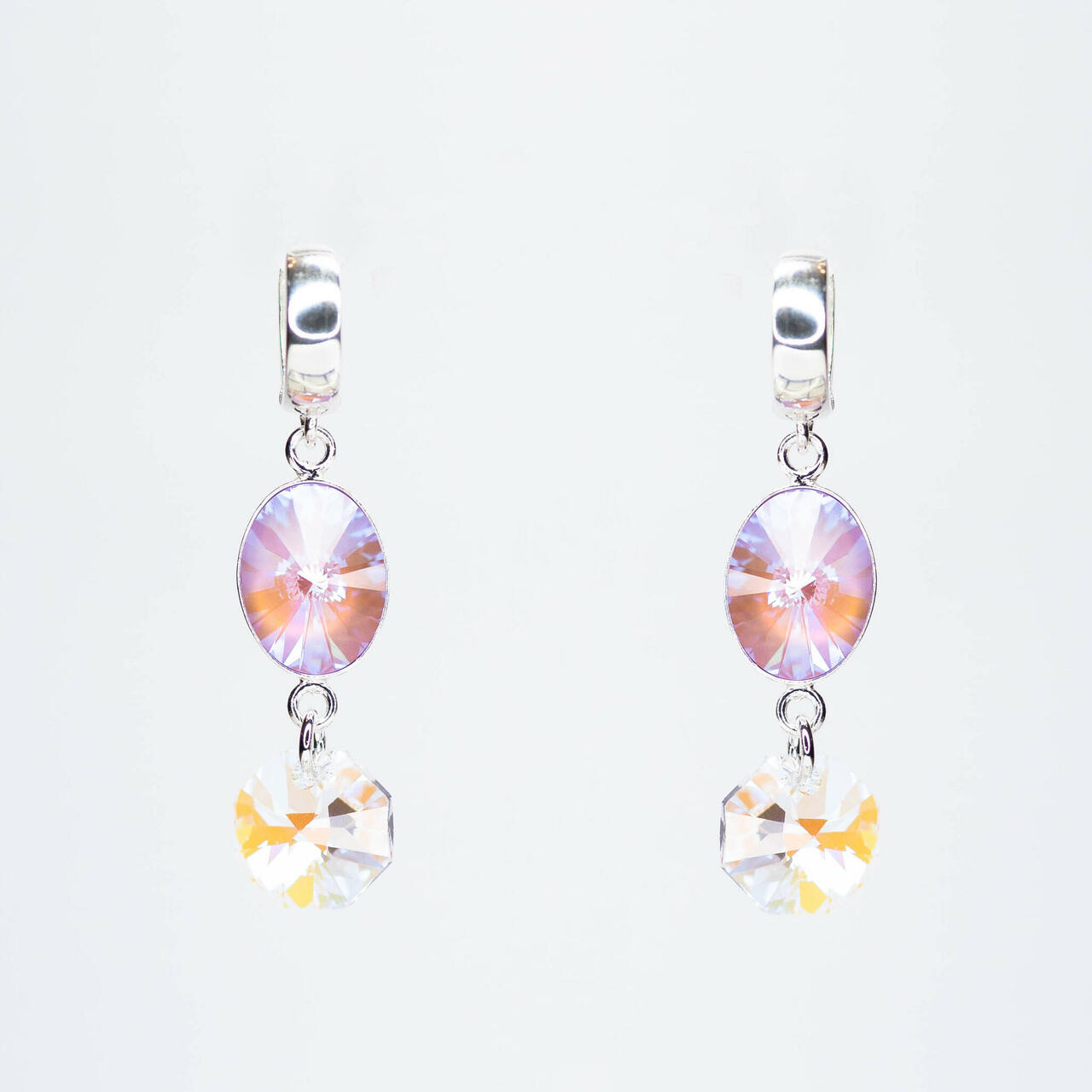 Swarovski kristallid on kinnitatud niklivabale hõbepõhjale 925. Kõrvarõngad on ingliseluku kinnitusega.